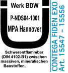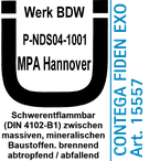 - Erfüllt höchste Anforderungen: BG1-Qualität und Brandverhalten B1, P-NDS04‑1001
