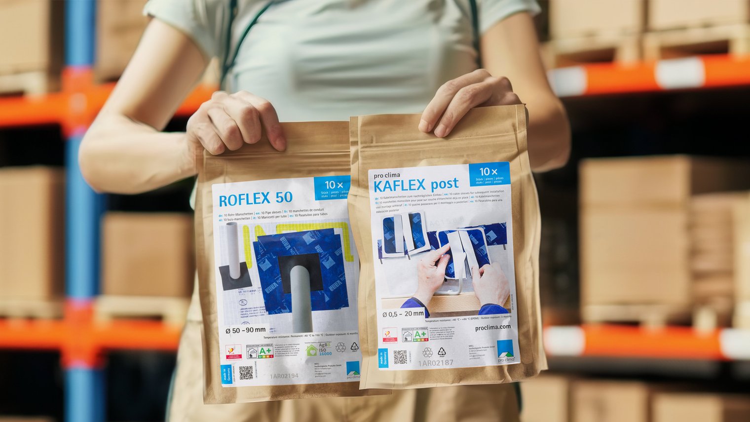 Im Zuge unserer fortlaufenden Bemühungen, umweltfreundliche Produktlösungen und Prozesse anzubieten, freuen wir uns eine Neuerung bei unseren Kabel- und Rohr-Manschetten einzuführen: Ab sofort setzen wir auf nachhaltige, wiederverschließbare Beutel aus 100% FSC-zertifiziertem Papier. Diese Verpackungen sind vollständig recyclefähig und leisten einen wichtigen Beitrag zum Umweltschutz. Wir von pro clima möchten bis Mitte 2025 alle Dichtmanschetten in den neuen Papierbeuteln anbieten.