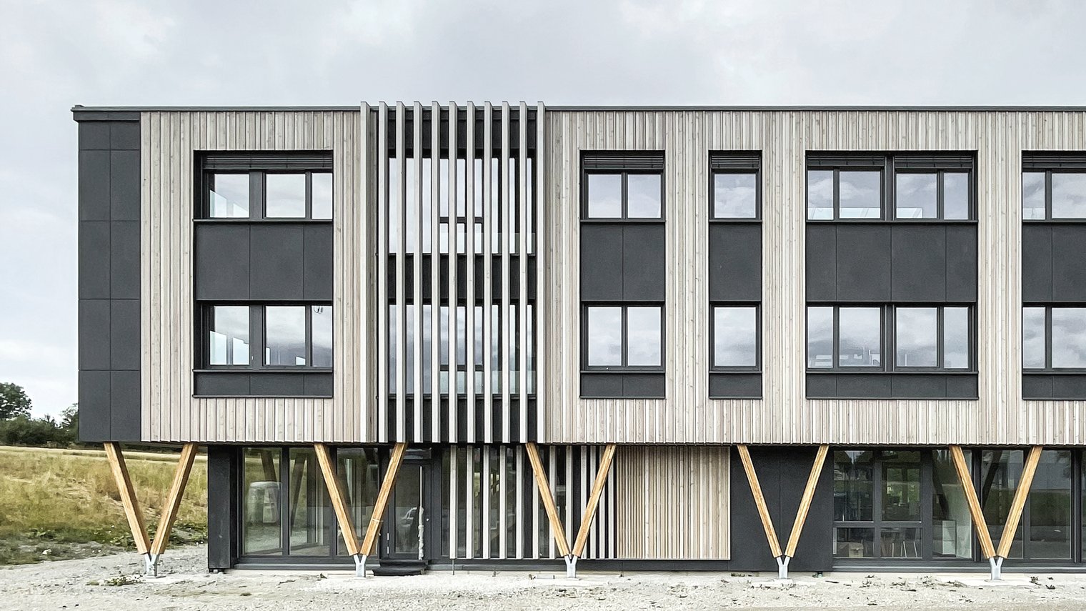 Kurze Bauzeit und hohe Qualität in Konstruktion und Architektur prägen das neue Verwaltungs- und Bemusterungsgebäude von Bauer Holzbau