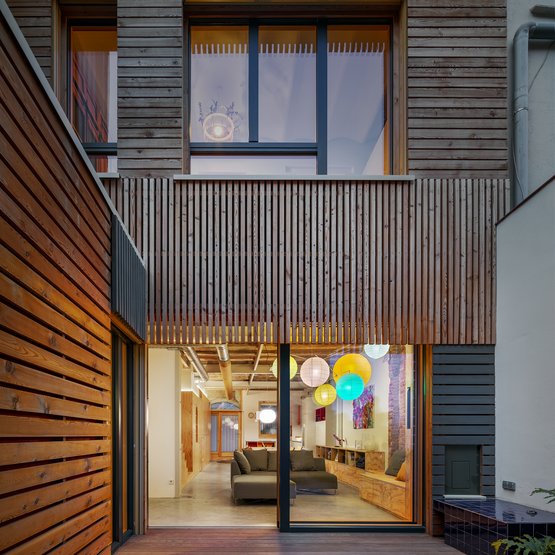 Um die Senkung des Energiebedarfs zu erreichen, entschieden sich die Entwickler unter anderem die undichten Bestandsfenster zu ersetzen sowie die Fassade zum Innenhof luftdicht zu dämmen. Hinter einer offenen Lückenschalung aus Lärchenholz schützt die SOLITEX FRONTA PENTA die Wärmedämmung und hält mit ihrer porenfreien, feuchteaktiven Funktionsmembran die Bauteile trocken. So macht die Bahn Konstruktionen besonders energieeffizient und schützt wirkungsvoll vor Bauschäden.