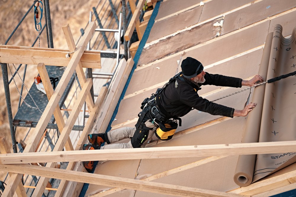 Ein wesentliches Detail der Ausführung war der Schutz der Holzelemente bereits vor der Montage:Die Außenflächen wurden mit SOLITEX ADHERO 1000 vorab geschützt, noch bevor die Wärmedämmung und die äußere Metallverkleidung angebracht wurden.