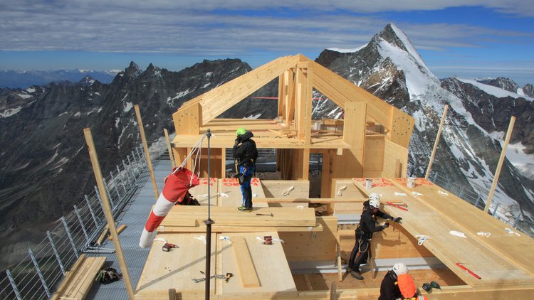 Durch die Höhenlage von ca. 3.830 m und Windgeschwindigkeiten von bis zu 200 km/h herrschten beim Bau ganz besondere Herausforderungen. So waren die Montagefenster für den Aufbau sehr kurz und sämtliche Materialien mussten per Helikopter zur Baustelle transportiert werden. Bei den Arbeiten am steilen Fels in hochalpiner Umgebung entscheidet jedes Detail über Dauerhaftigkeit und Sicherheit.