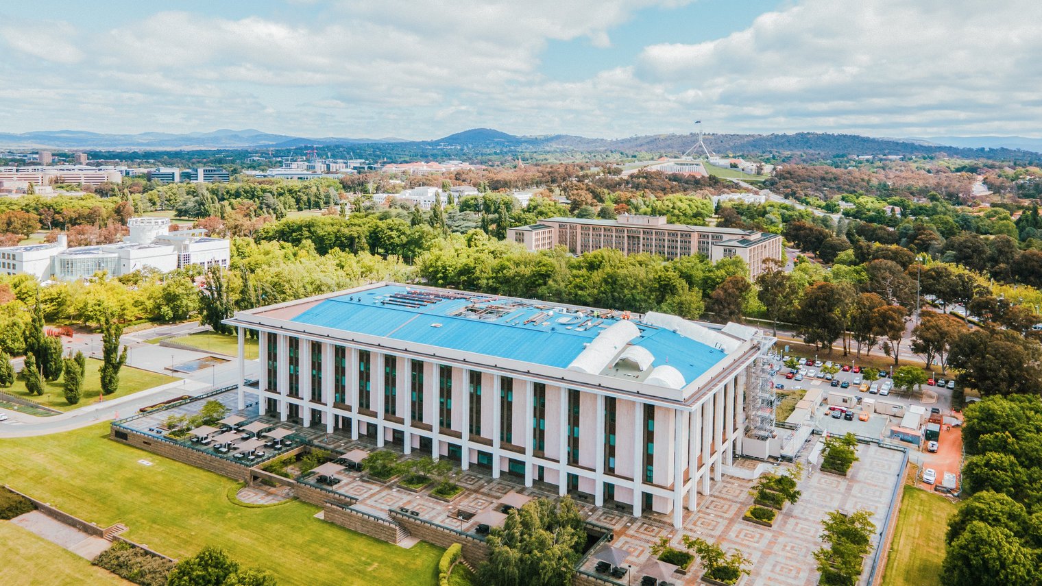 Das Parkes Place-Gebäude, in dem sich die Nationalbibliothek Australiens befindet, wurde 1968 eröffnet und steht heute unter Denkmalschutz. 2020 erlitt das Kupferdach des Gebäudes erhebliche Schäden aufgrund eines schweren Hagelsturms. In den folgenden Monaten gelang während starker Regenfälle Feuchtigkeit ins Gebäude und es kam zu Wasserschäden an der Bibliotheksammlung.